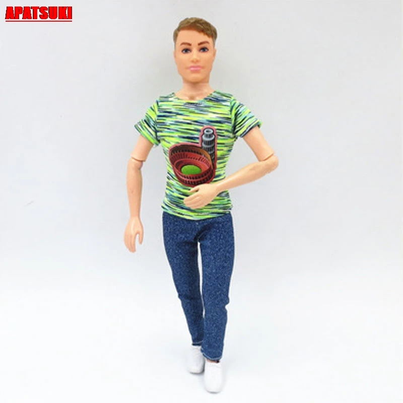 Premium Vert À Rayures Manches Courtes t-shirts hauts Denim Jeans Pantalons Longs Pantalons Pour Ken Poupée