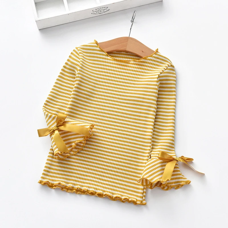 Premium T-Shirt filles printemps coton manches longues évasées filles chemises fille enfants bébé enfant en