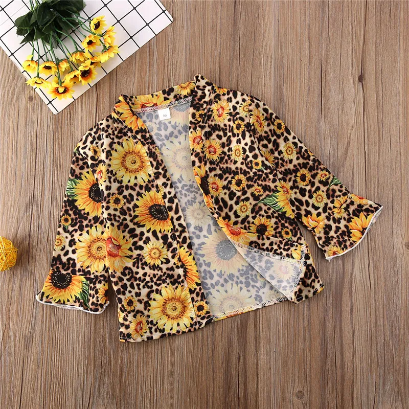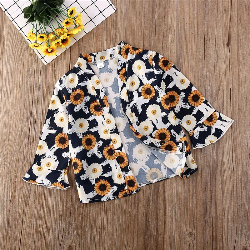 Clearance Mode enfants bébé filles chrysanthème imprimer longues fusées à manches T-Shirts hauts automne Card