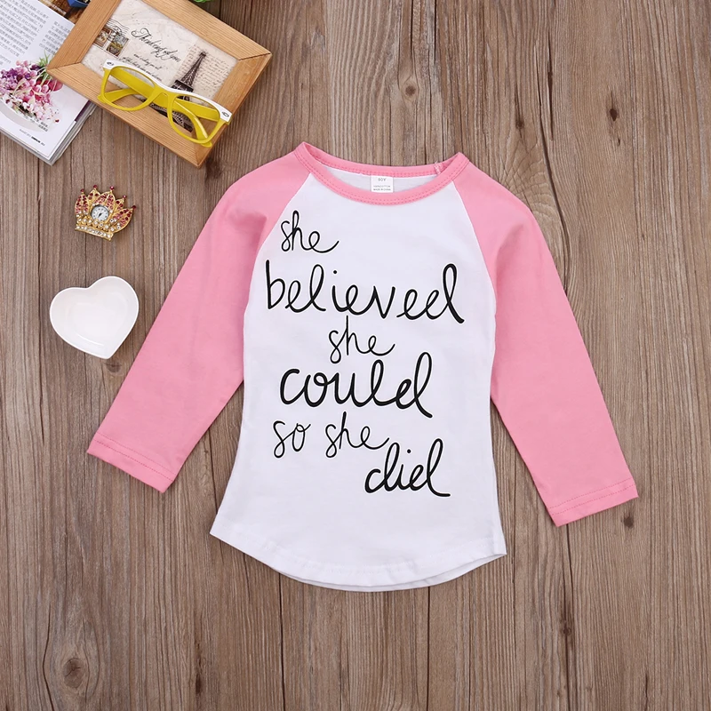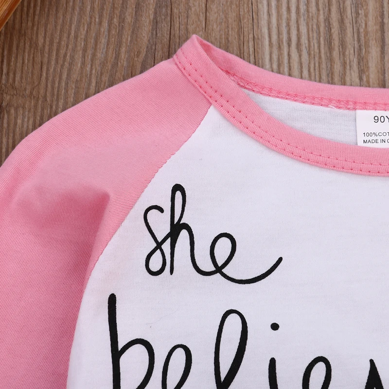 Bargain Nouveau-né bébé filles décontracté à manches longues o-cou lettre rose T-Shirt tenue automne Sunsui