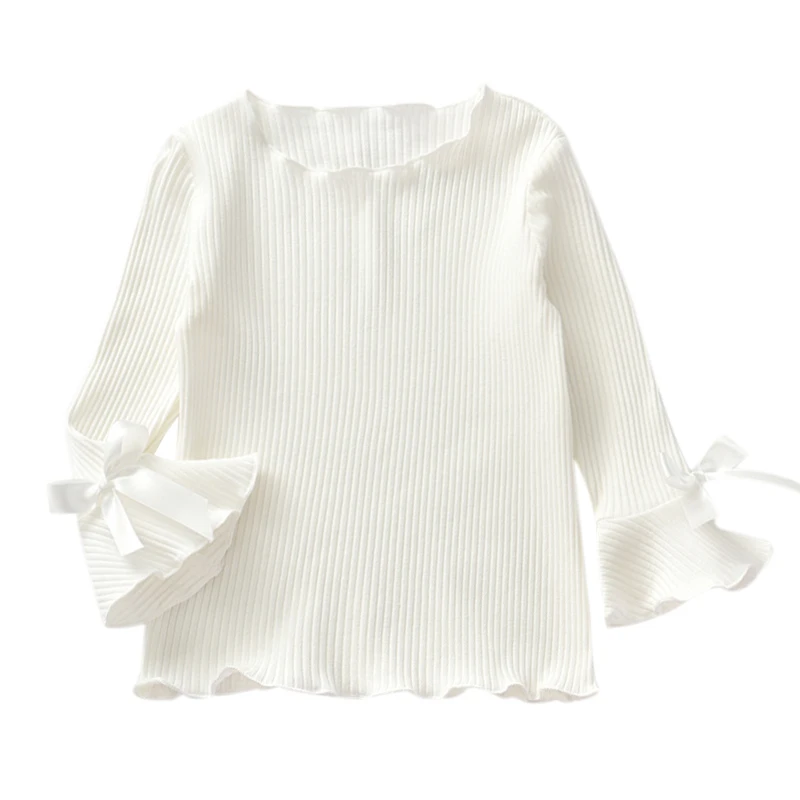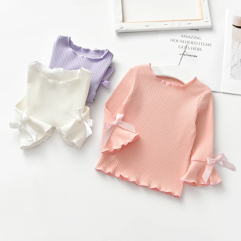 Great buy Automne enfants bébé fille mignon à manches longues Flare T-Shirts enfants Bowknot conception hauts